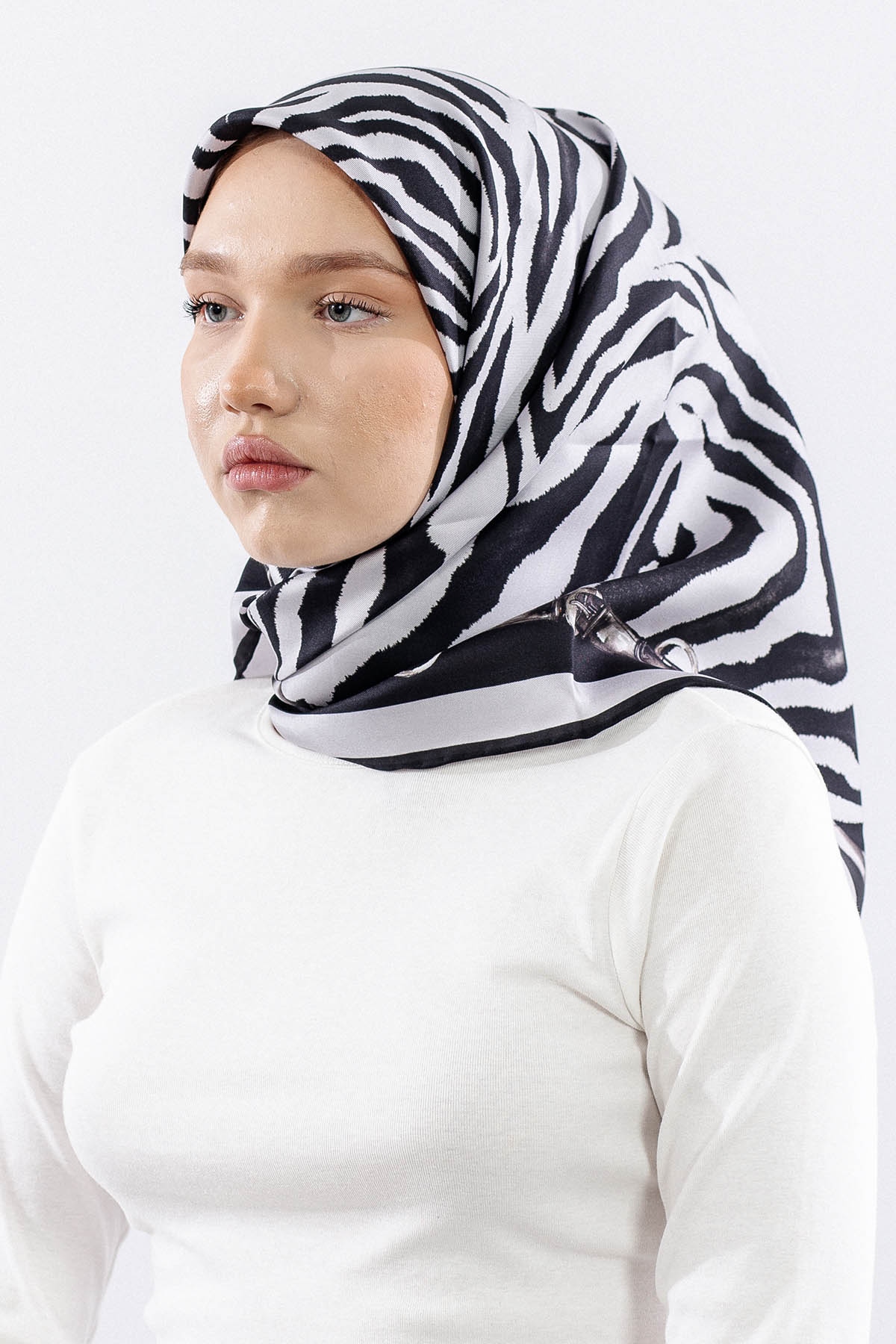 Dg14827 İpek Eşarp Zebra Desen Tvil Kumas - Gri - 1