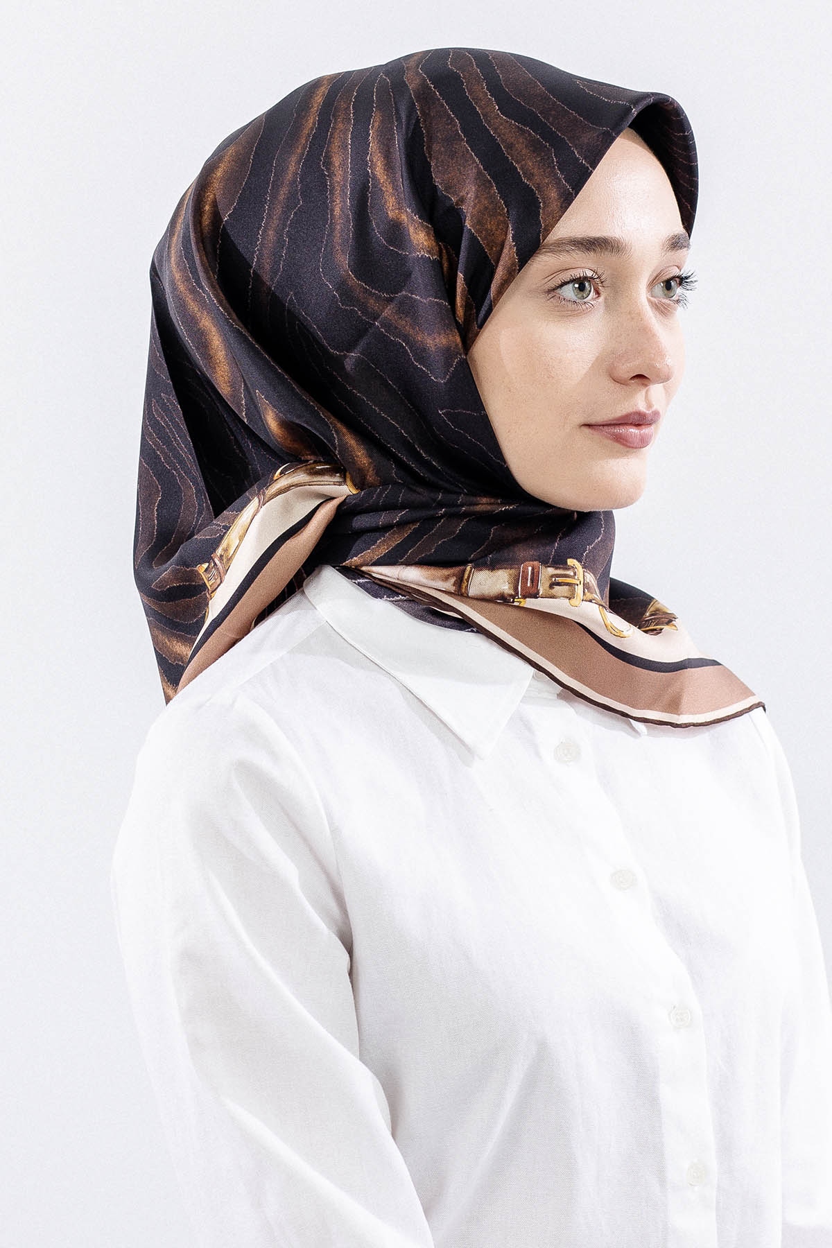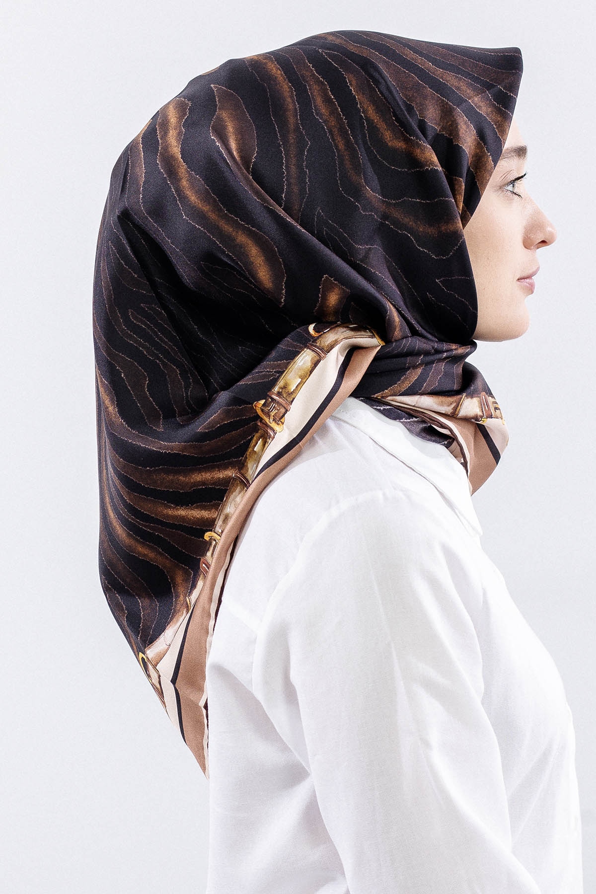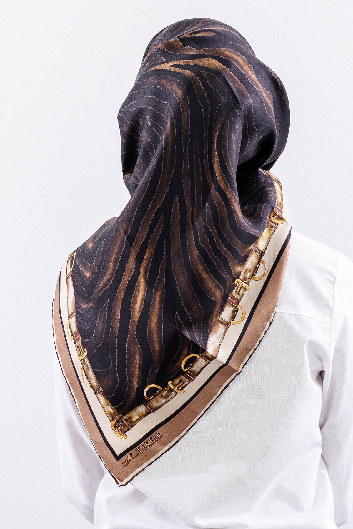 Dg14827 İpek Eşarp Zebra Desen Tvil Kumas - Kahve - 1