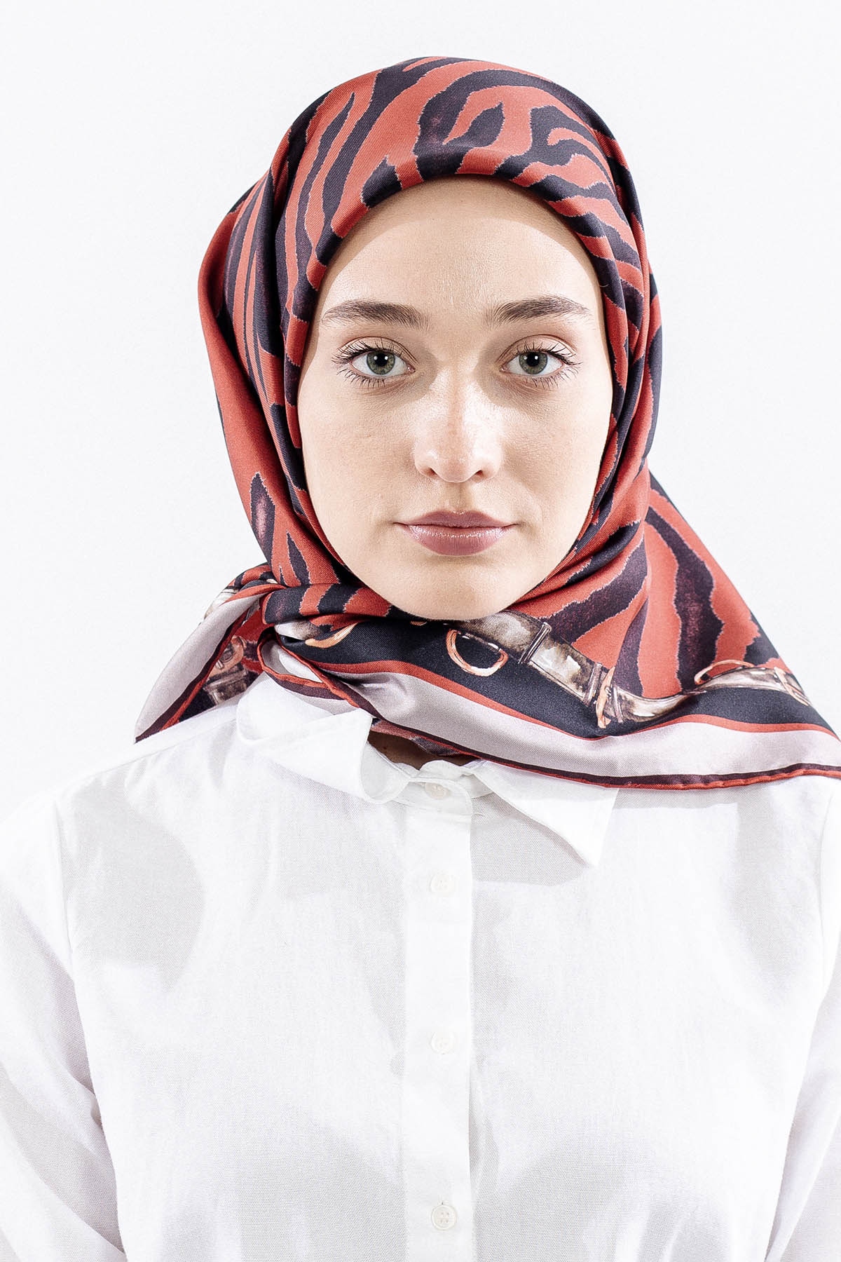 Dg14827 İpek Eşarp Zebra Desen Tvil Kumas - Kiremit - 1
