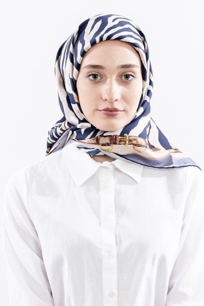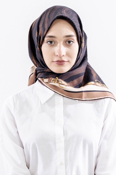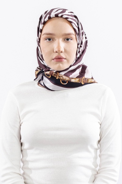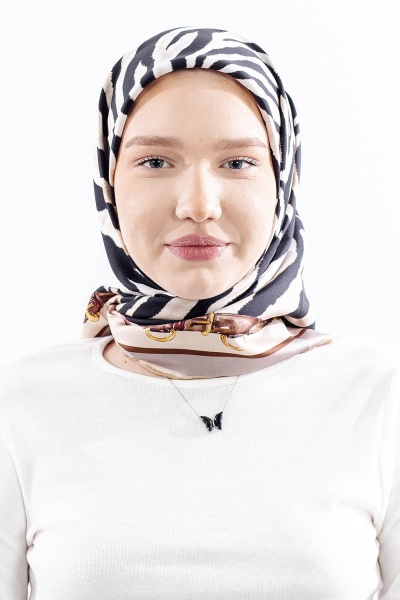 Dg14827 İpek Eşarp Zebra Desen Tvil Kumas - Siyah_vizon - 1