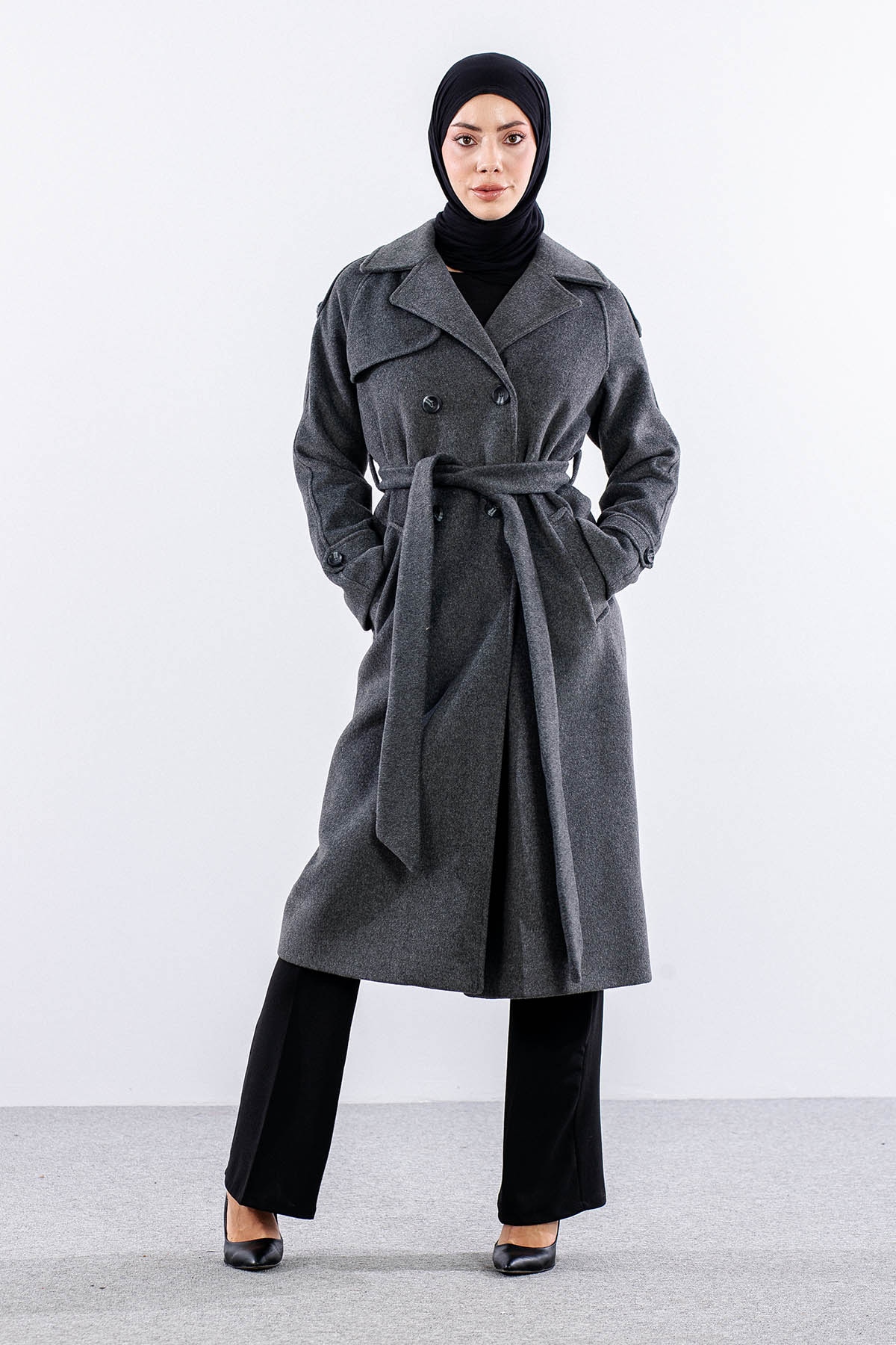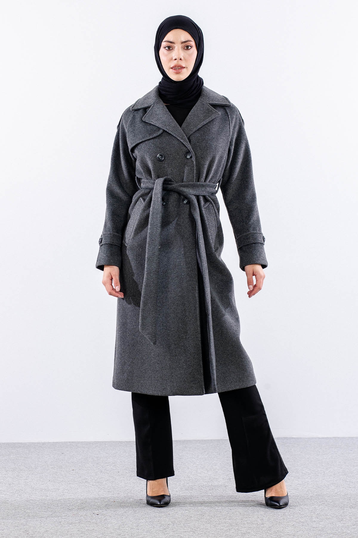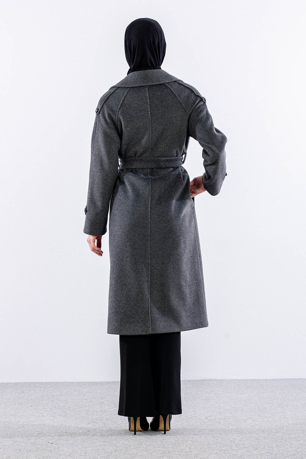 F-1265 Kaşe Kaban 38-48 Cıft Dugme Tek Aller - Antrasit - 3