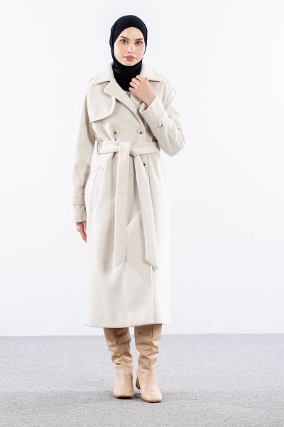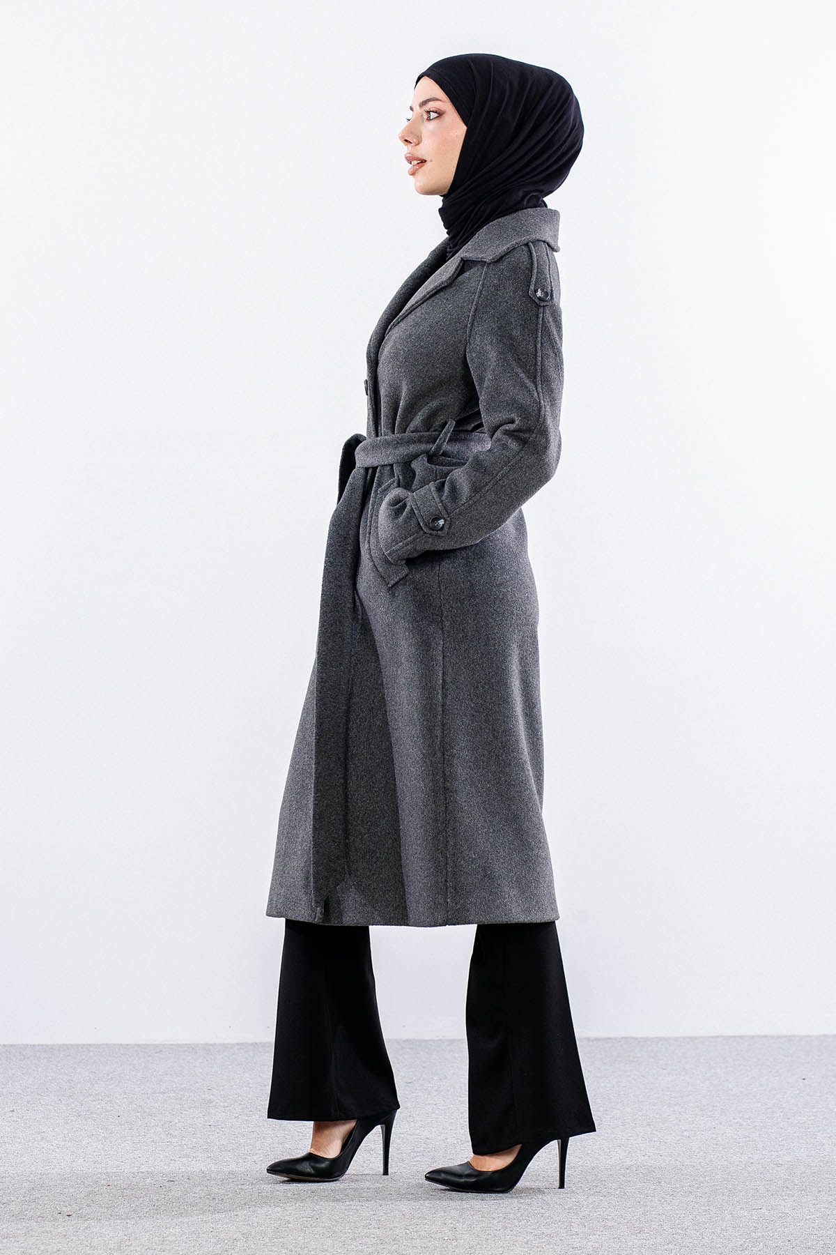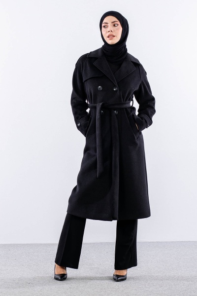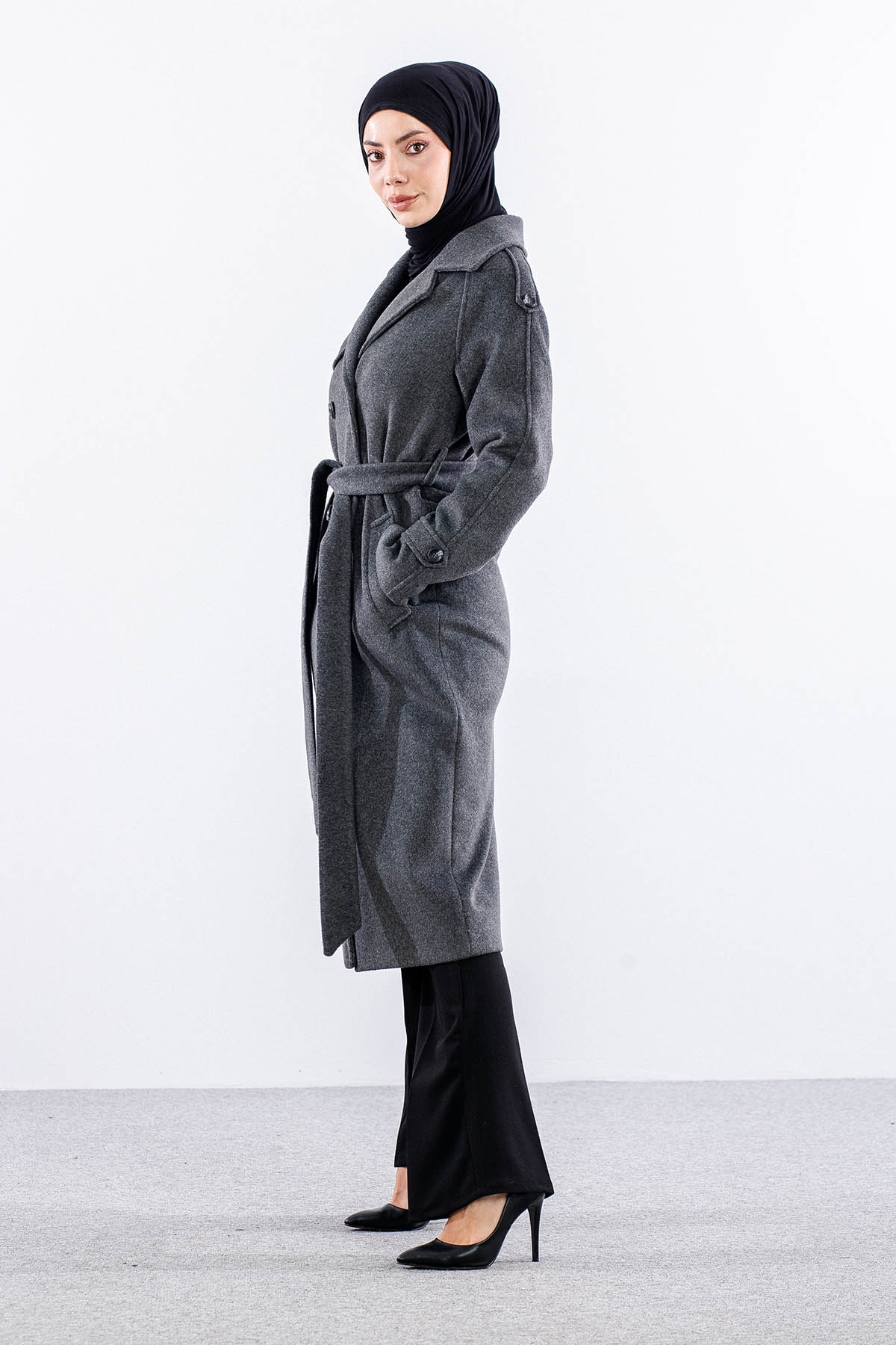 F-1265 Kaşe Kaban 38-48 Cıft Dugme Tek Aller - Antrasit - 3