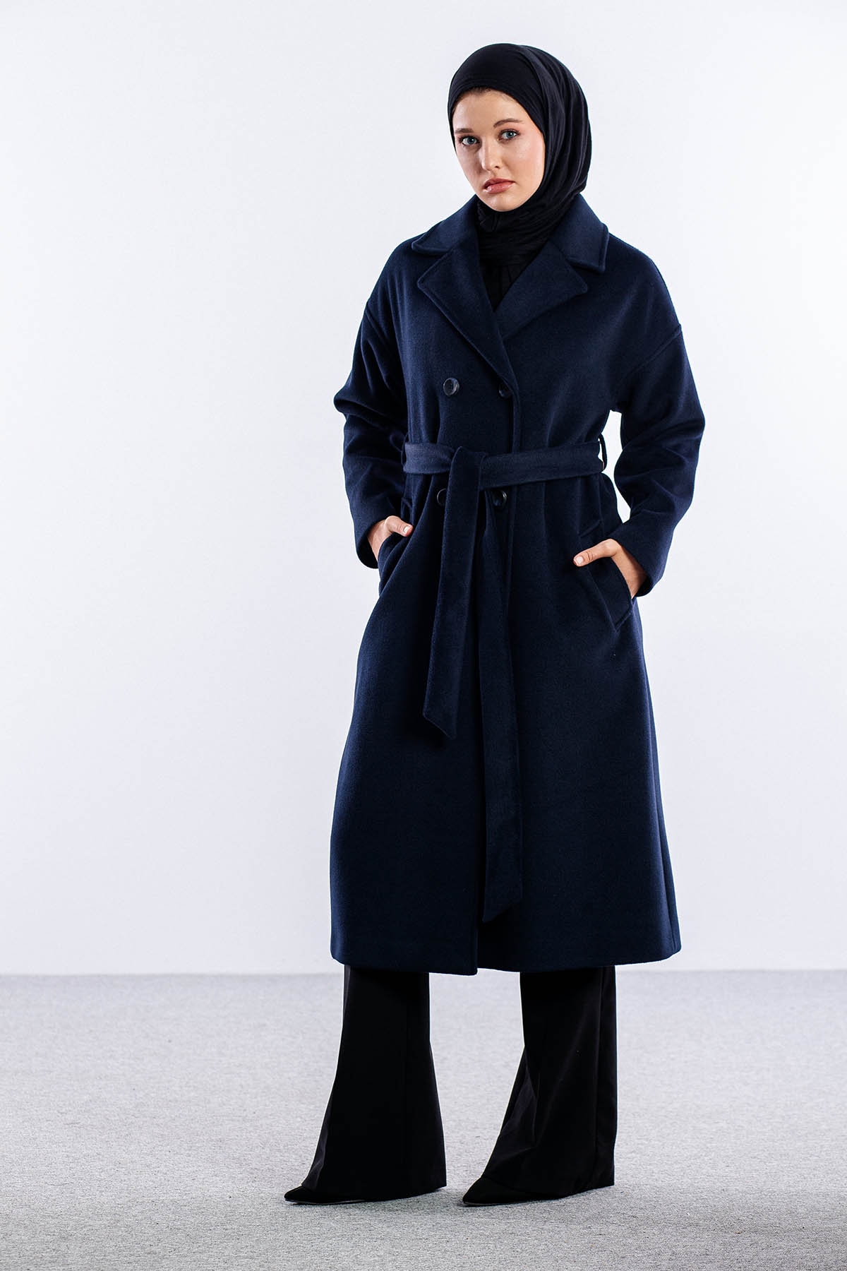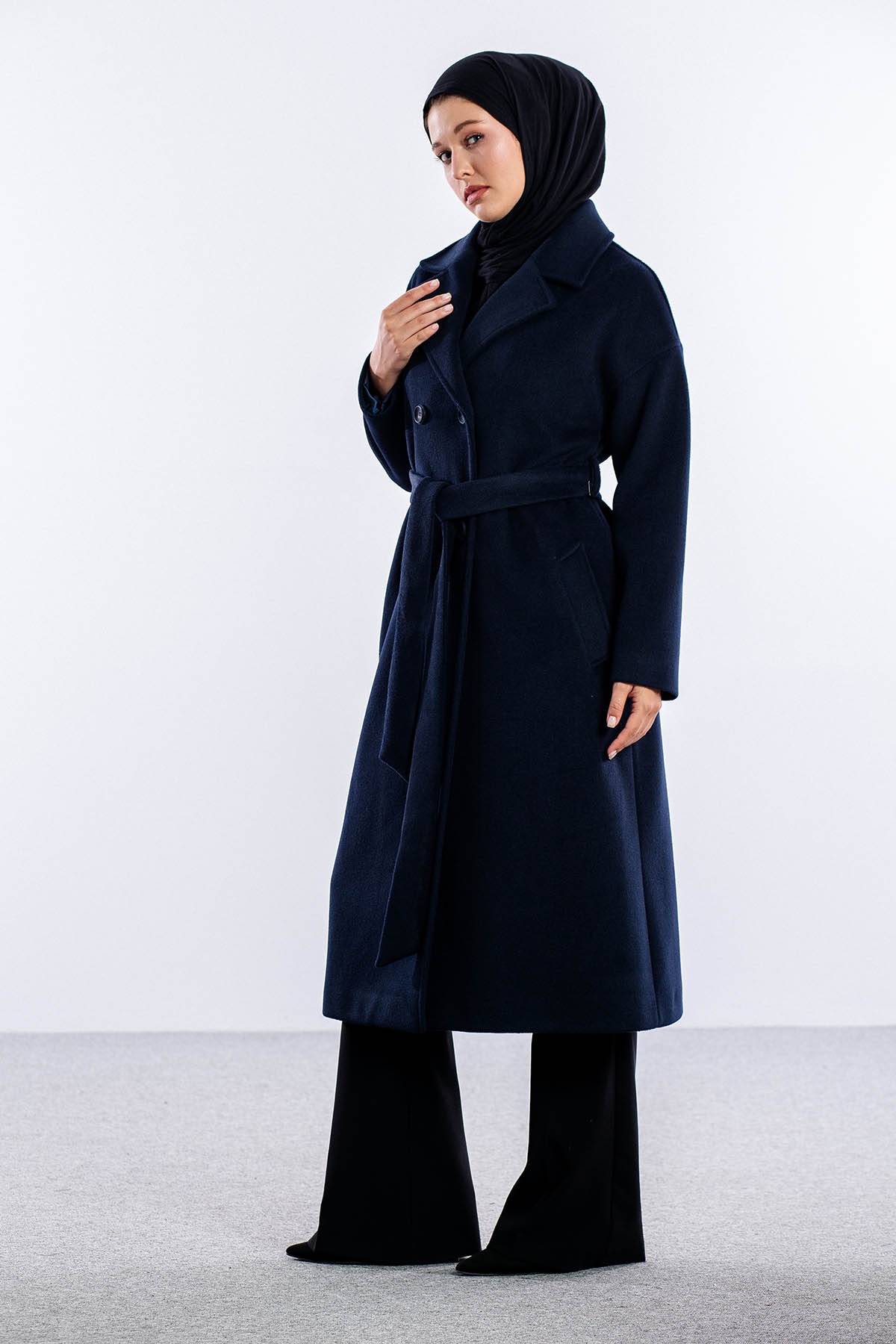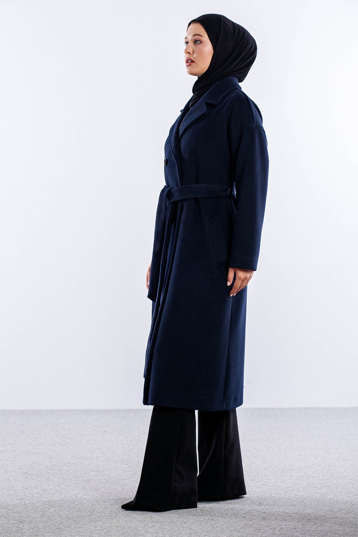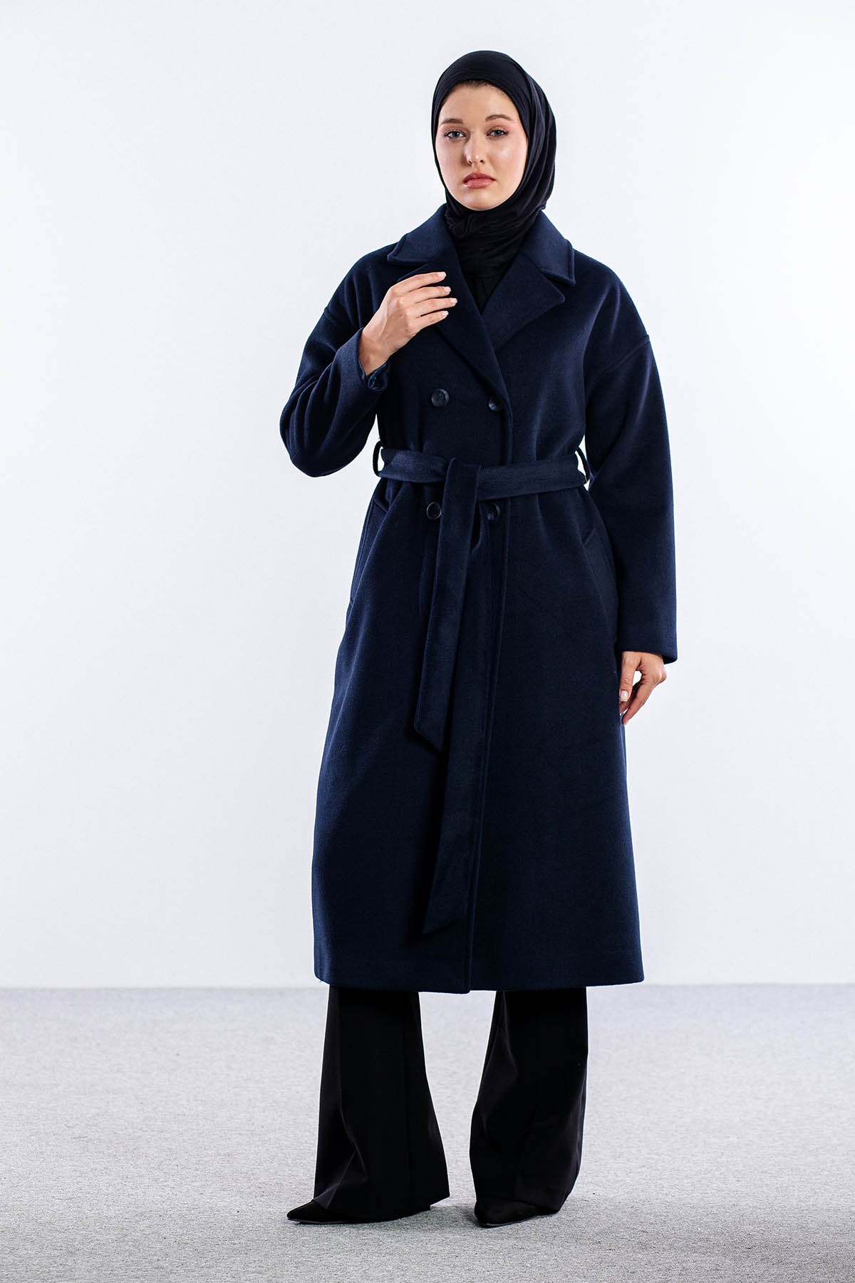 F-1455 Kaşe Kaban 38-48 - Lacivert - 3