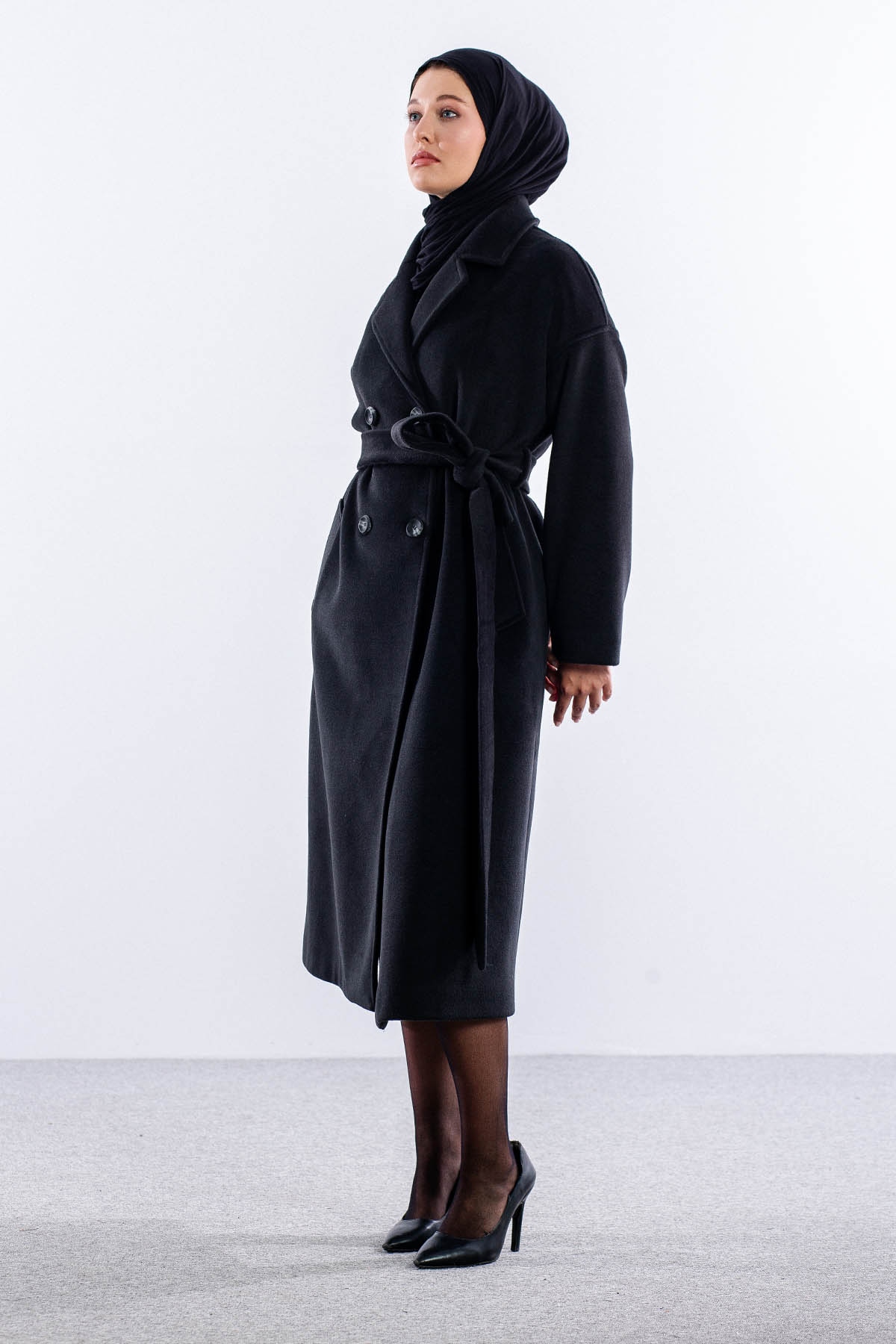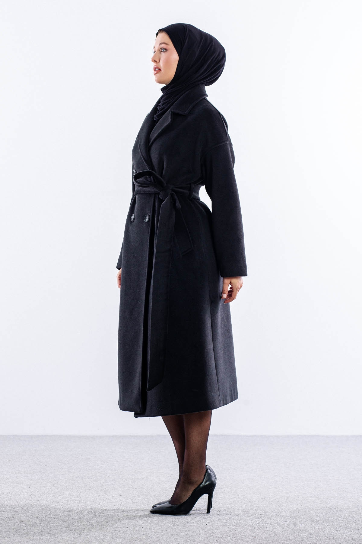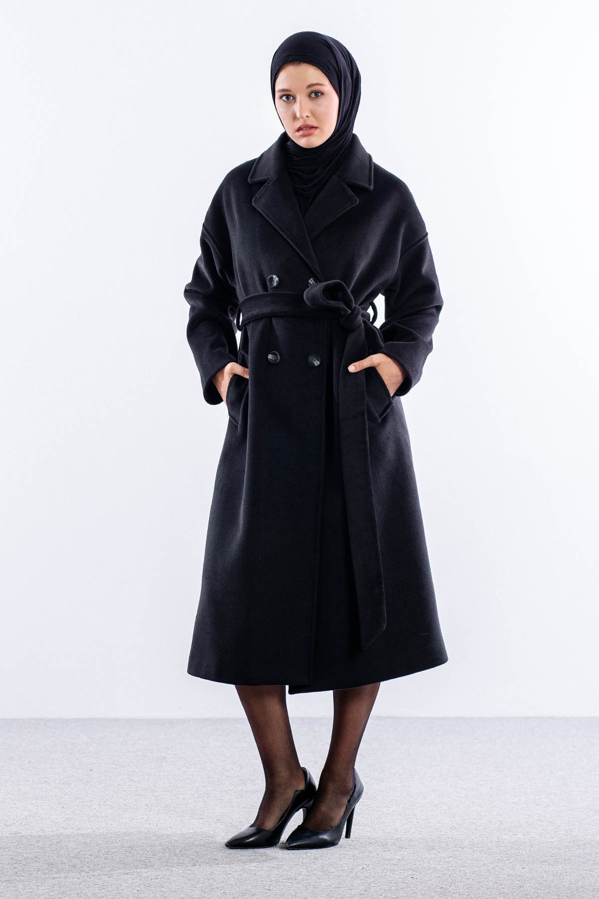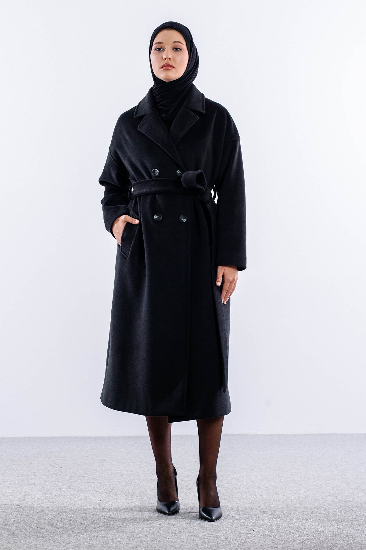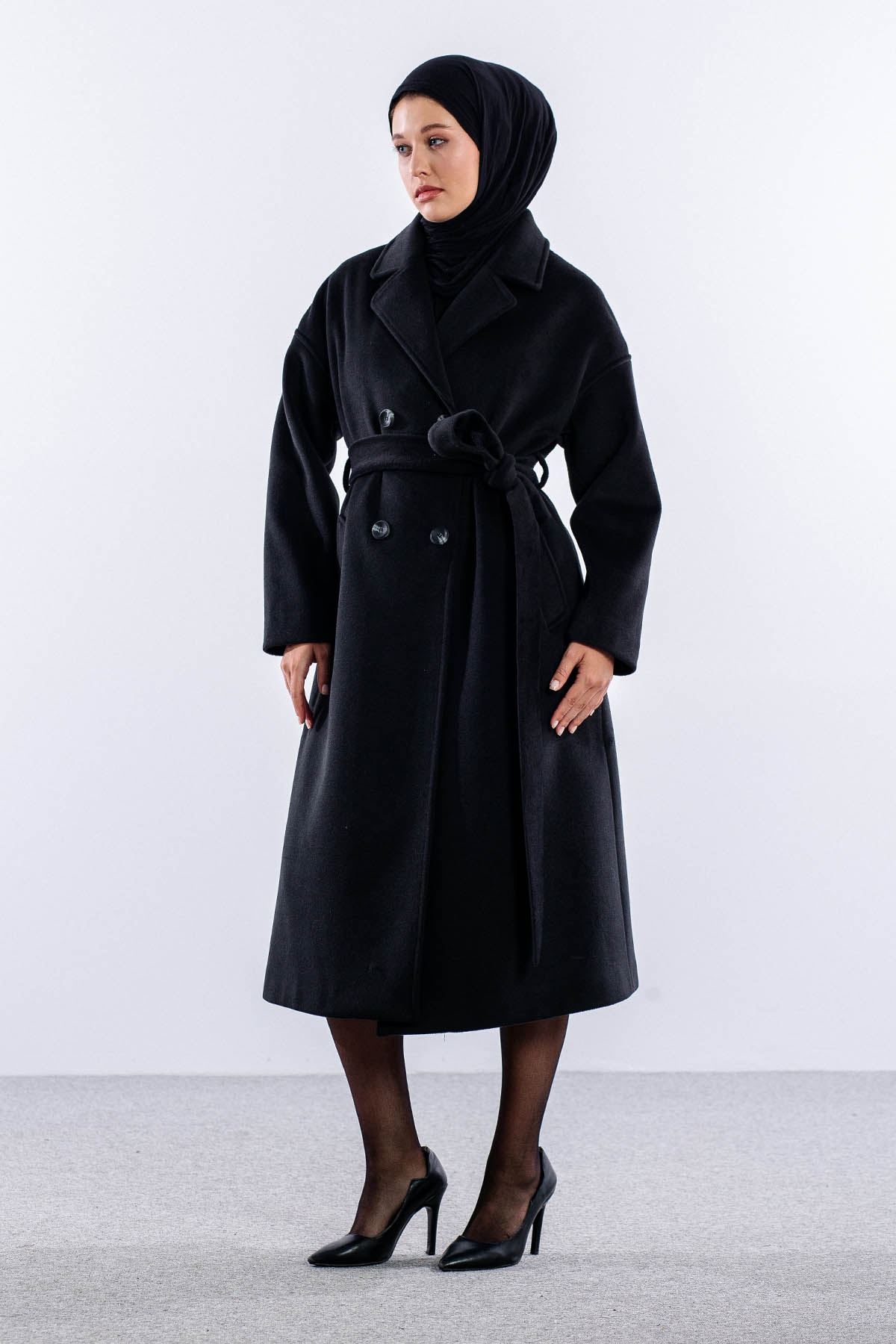 F-1455 Kaşe Kaban 38-48 - Siyah - 2