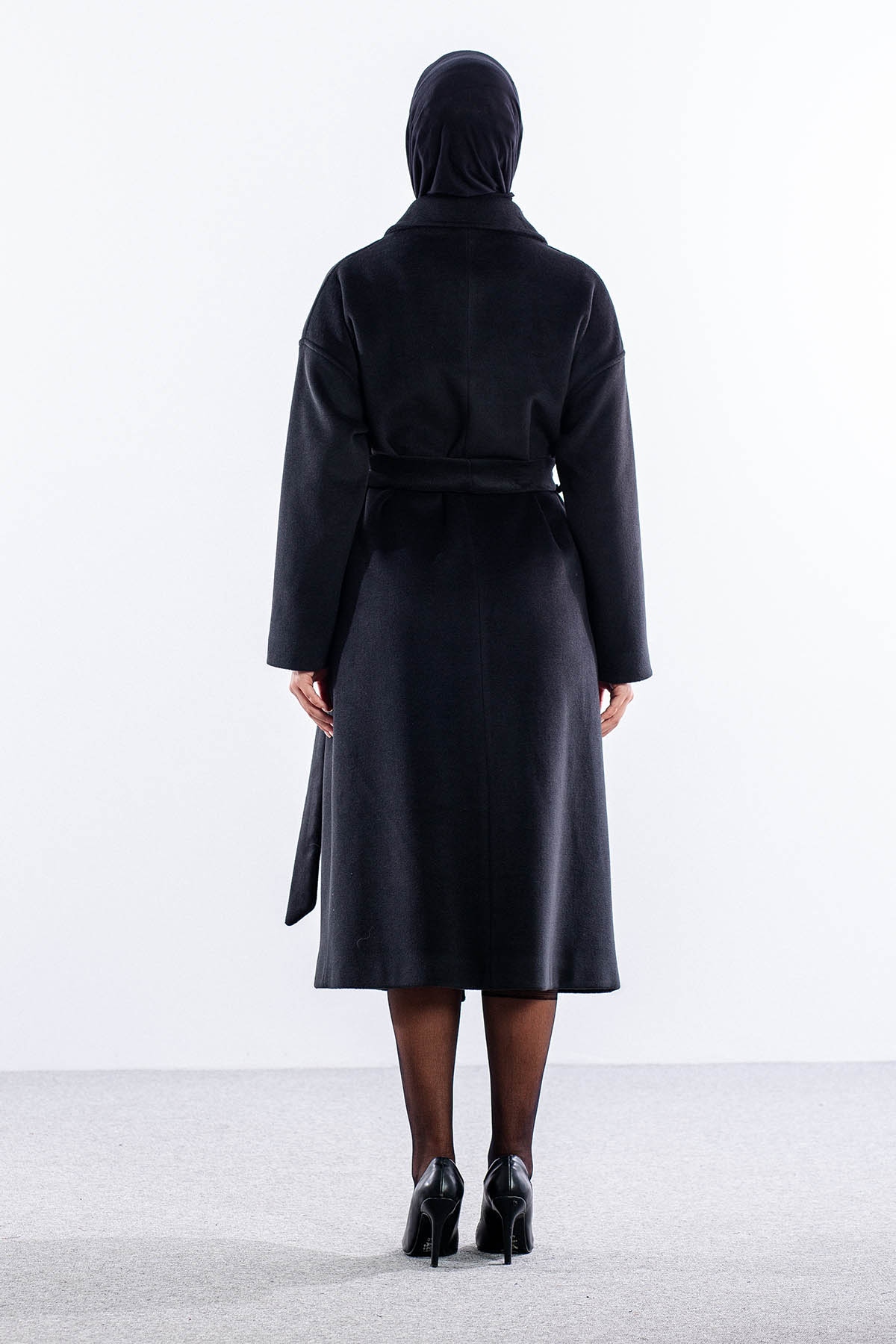 F-1455 Kaşe Kaban 38-48 - Siyah - 3