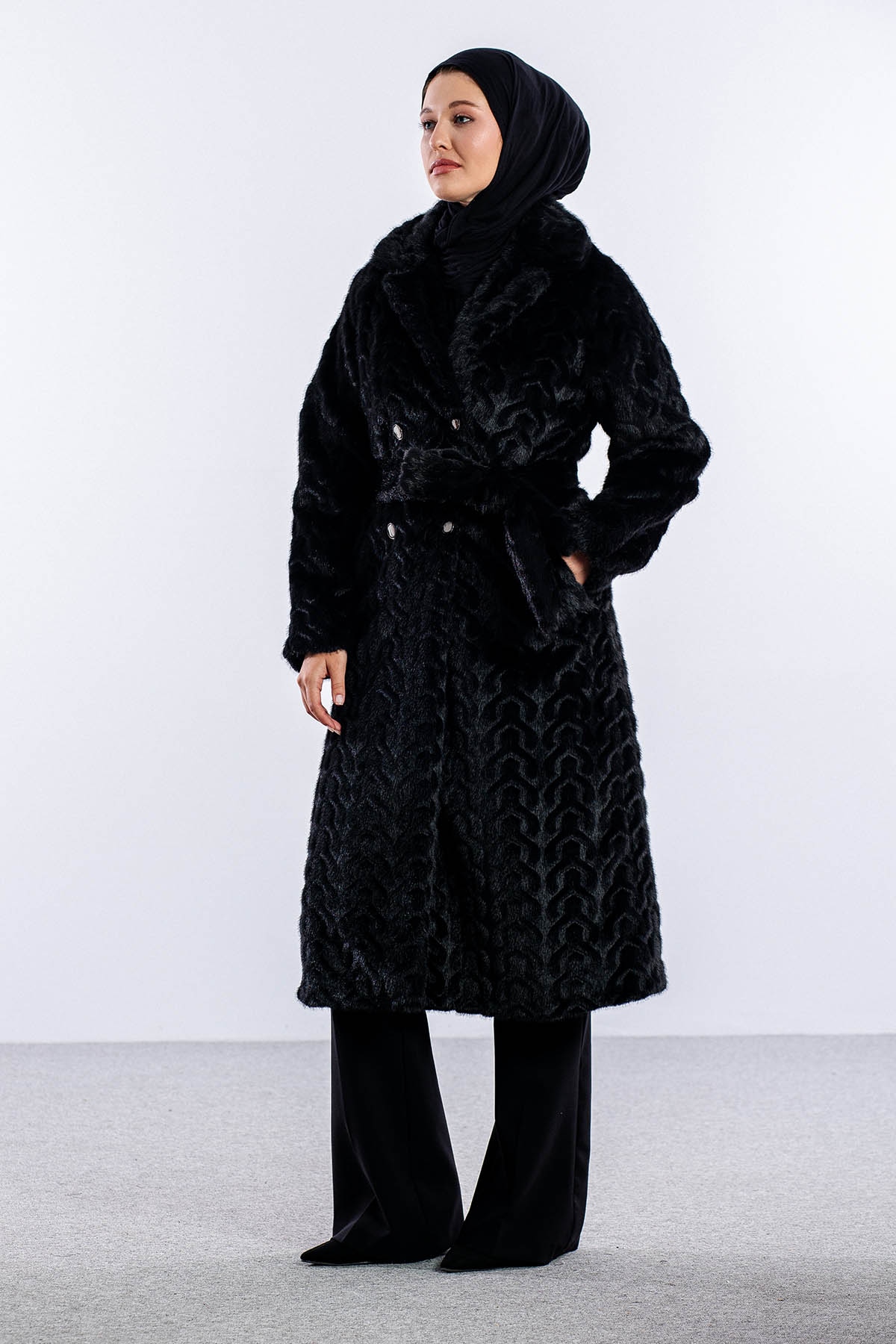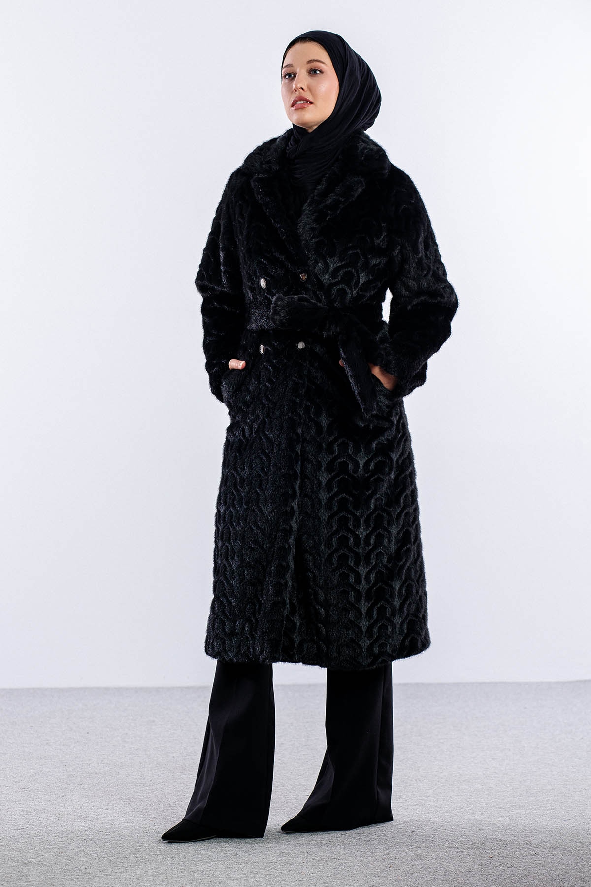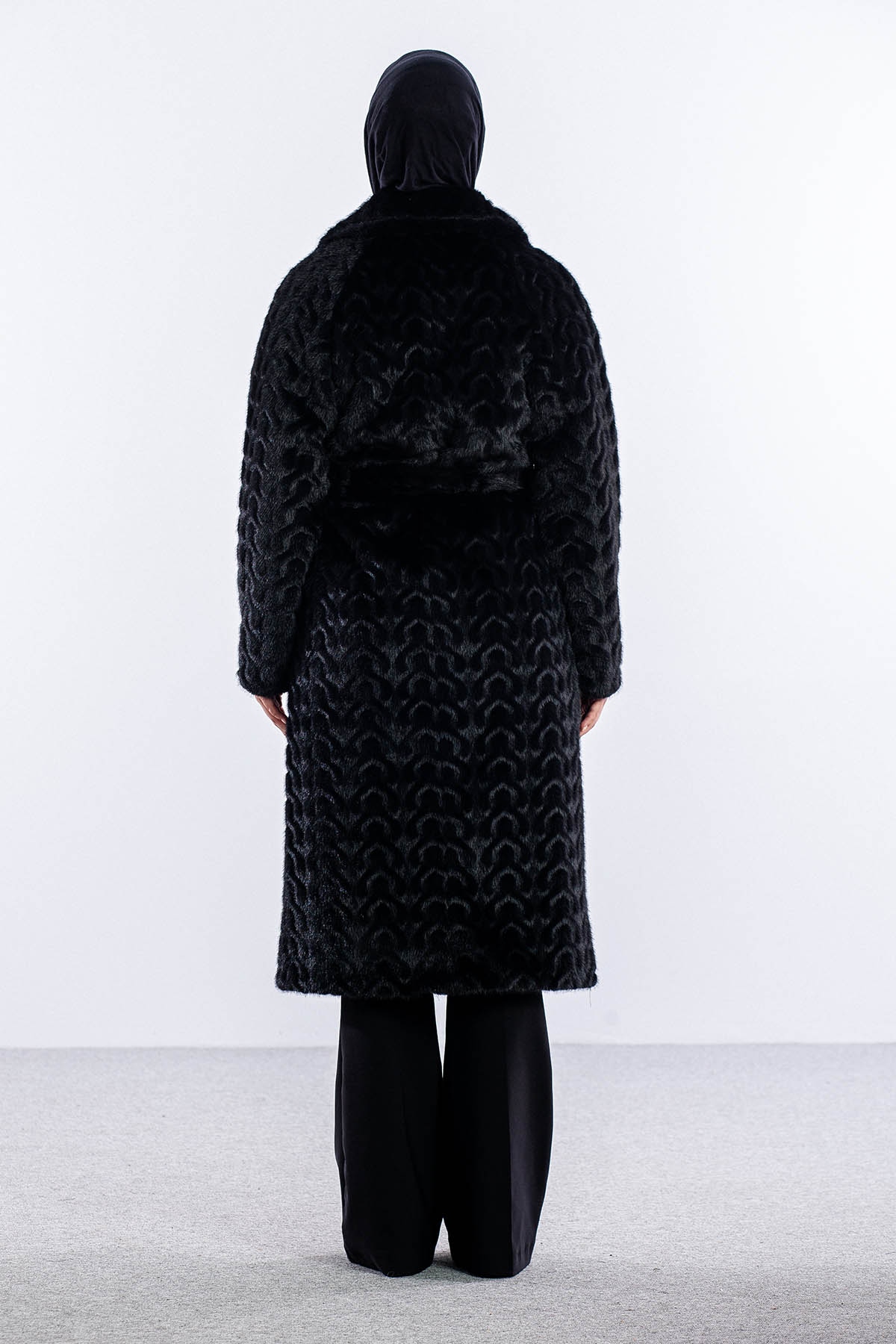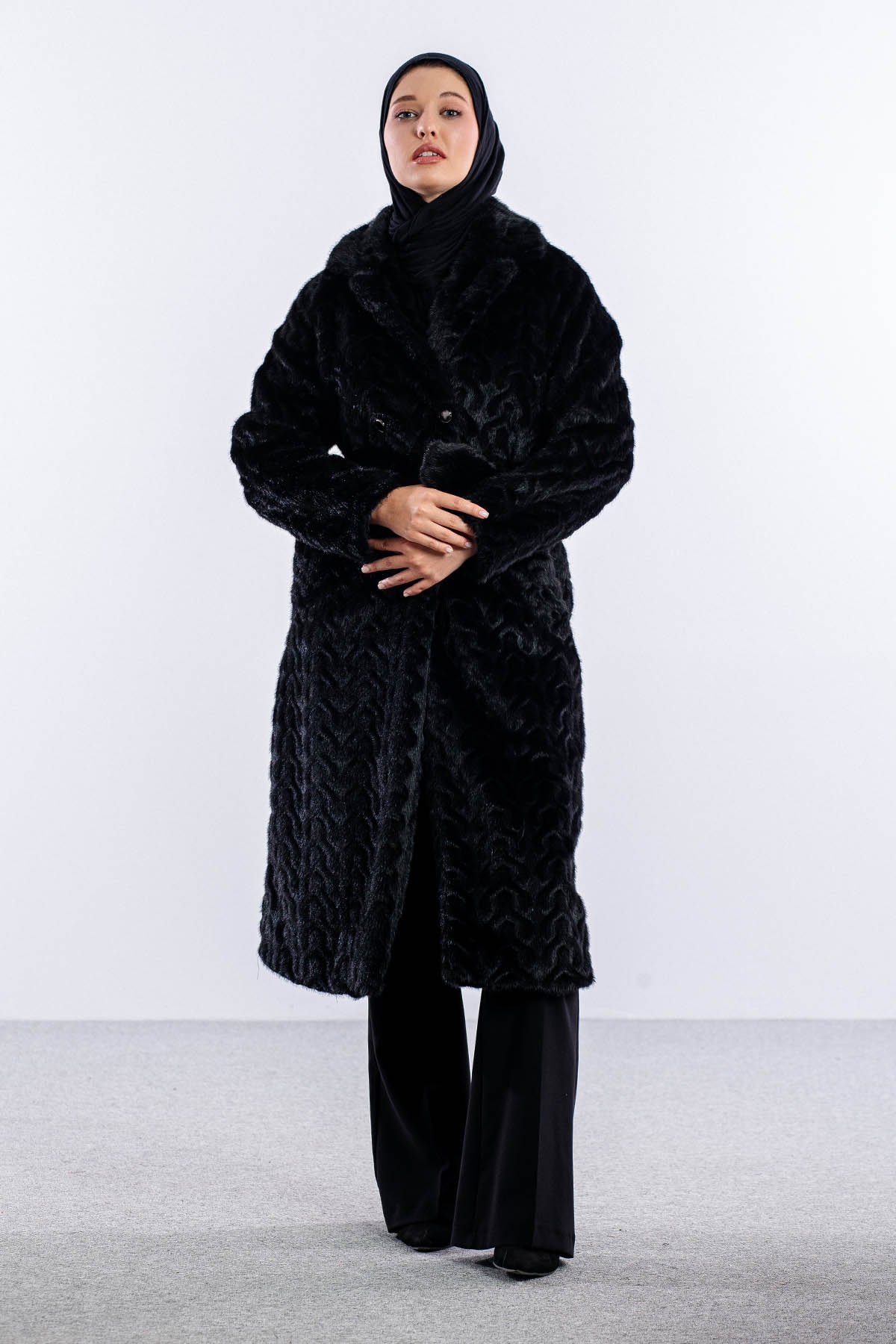 F-1571 Kürklü Kaban 38-48 - Siyah