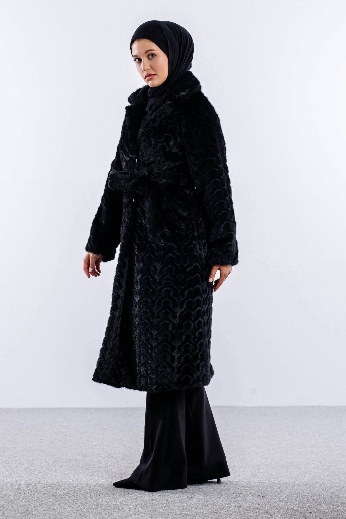F-1571 Kürklü Kaban 38-48 - Siyah - 4