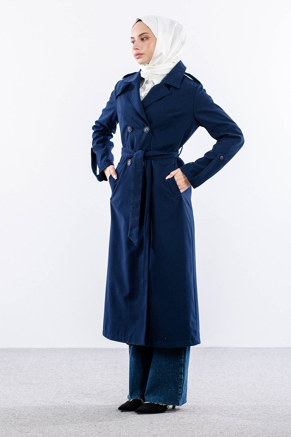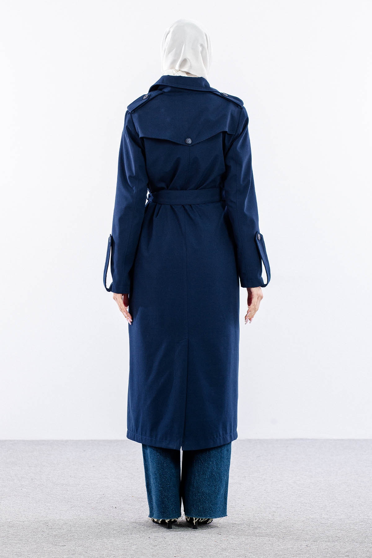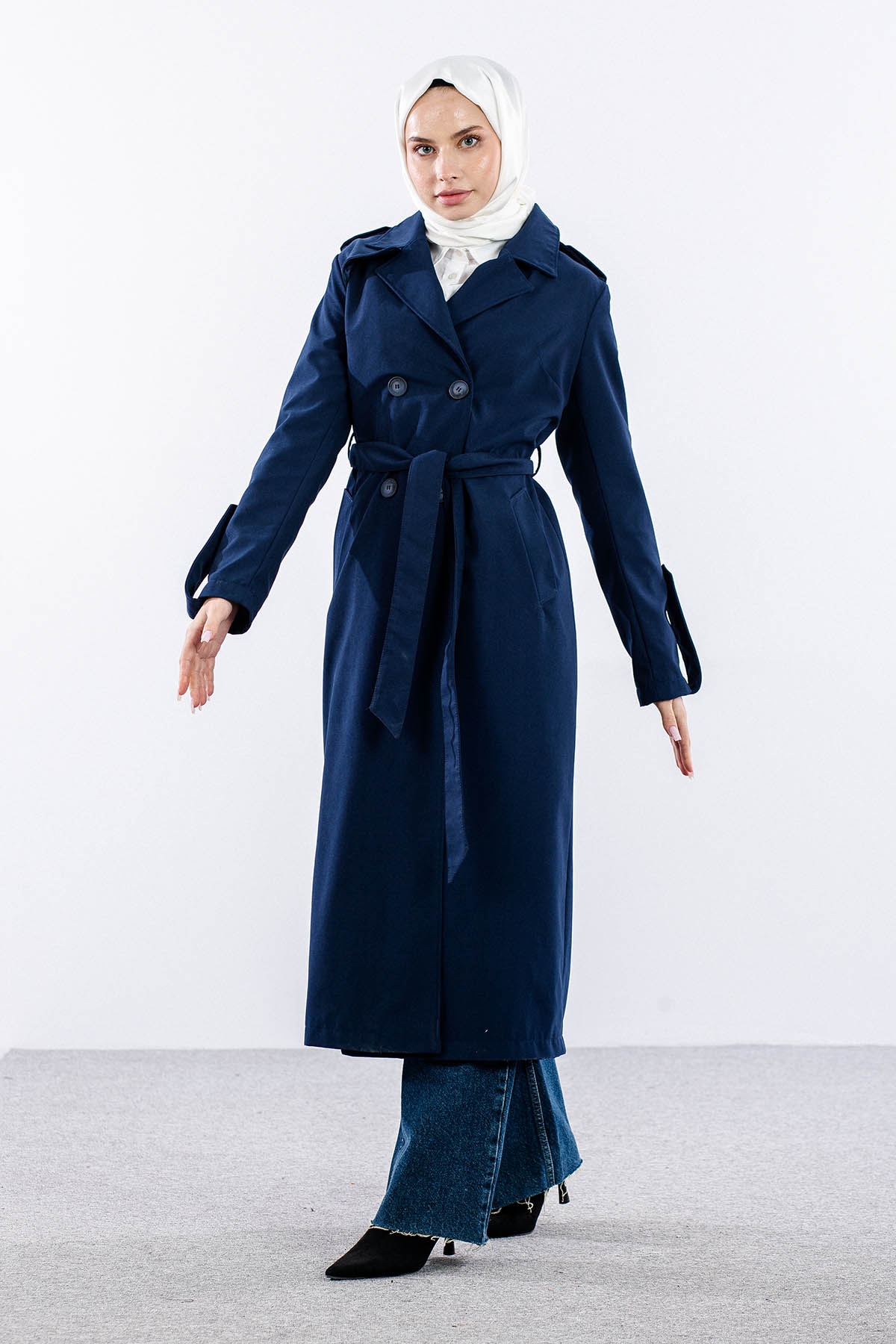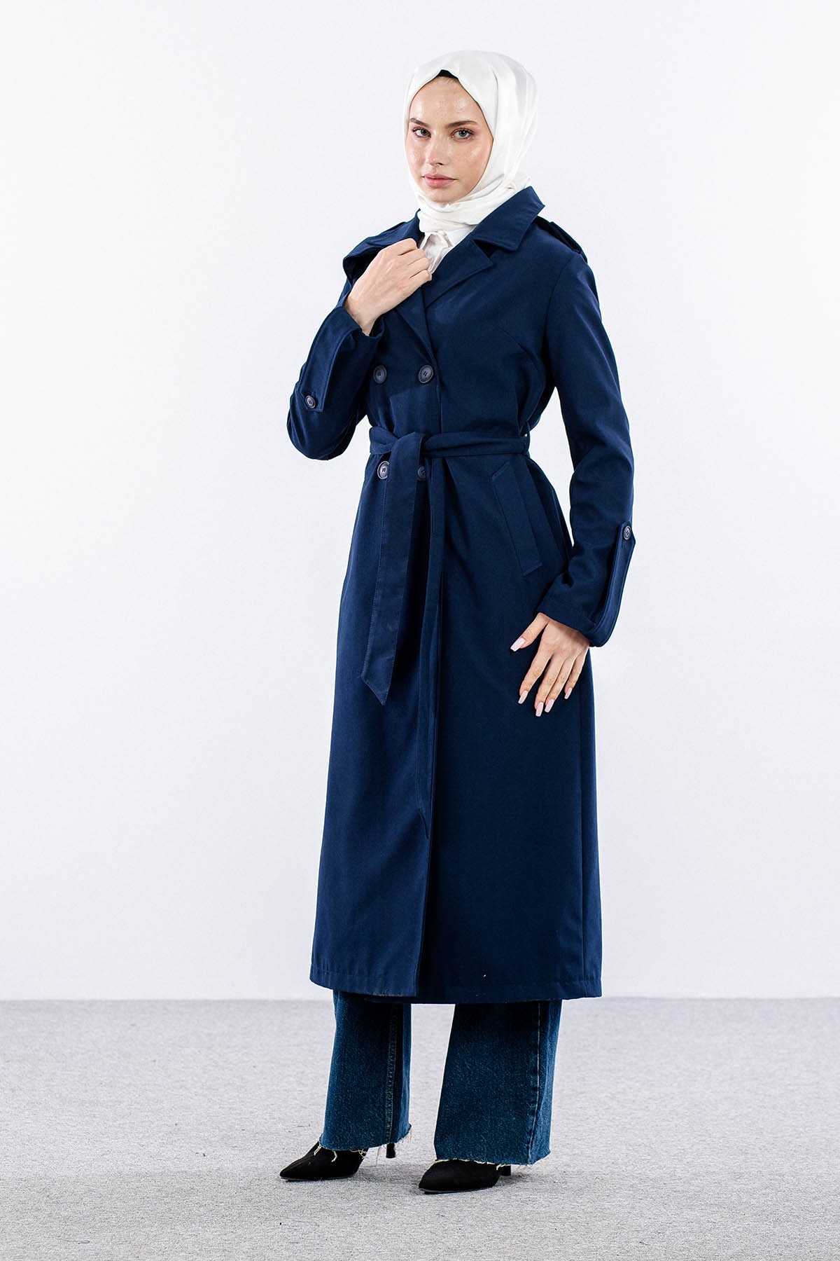 F-1582 Trençkap 38-48 Araboy - Lacivert - 2