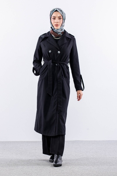 F-1582 Trençkap 38-48 Araboy - Lacivert - 1