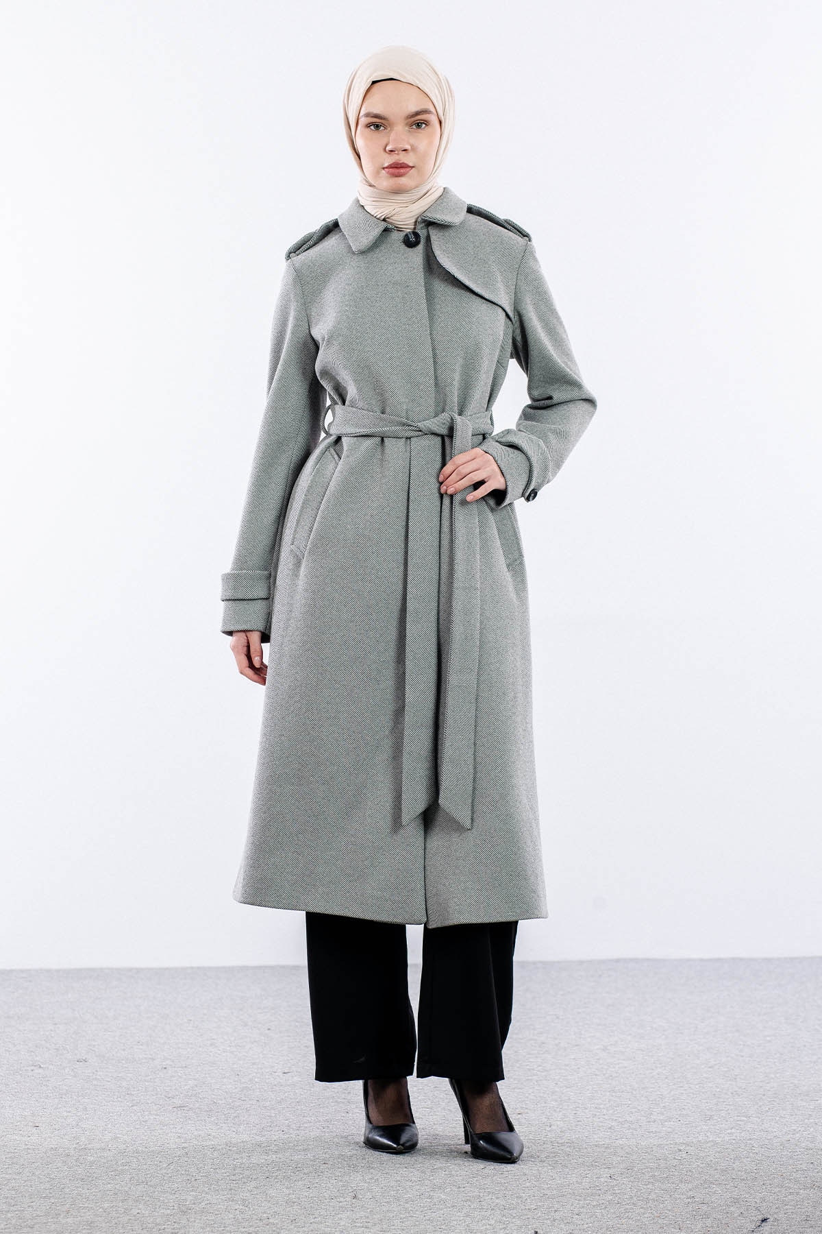 F-1586 Kaşe Kaban 38-48 Baliksirti Fermuarli - A_gri - 1