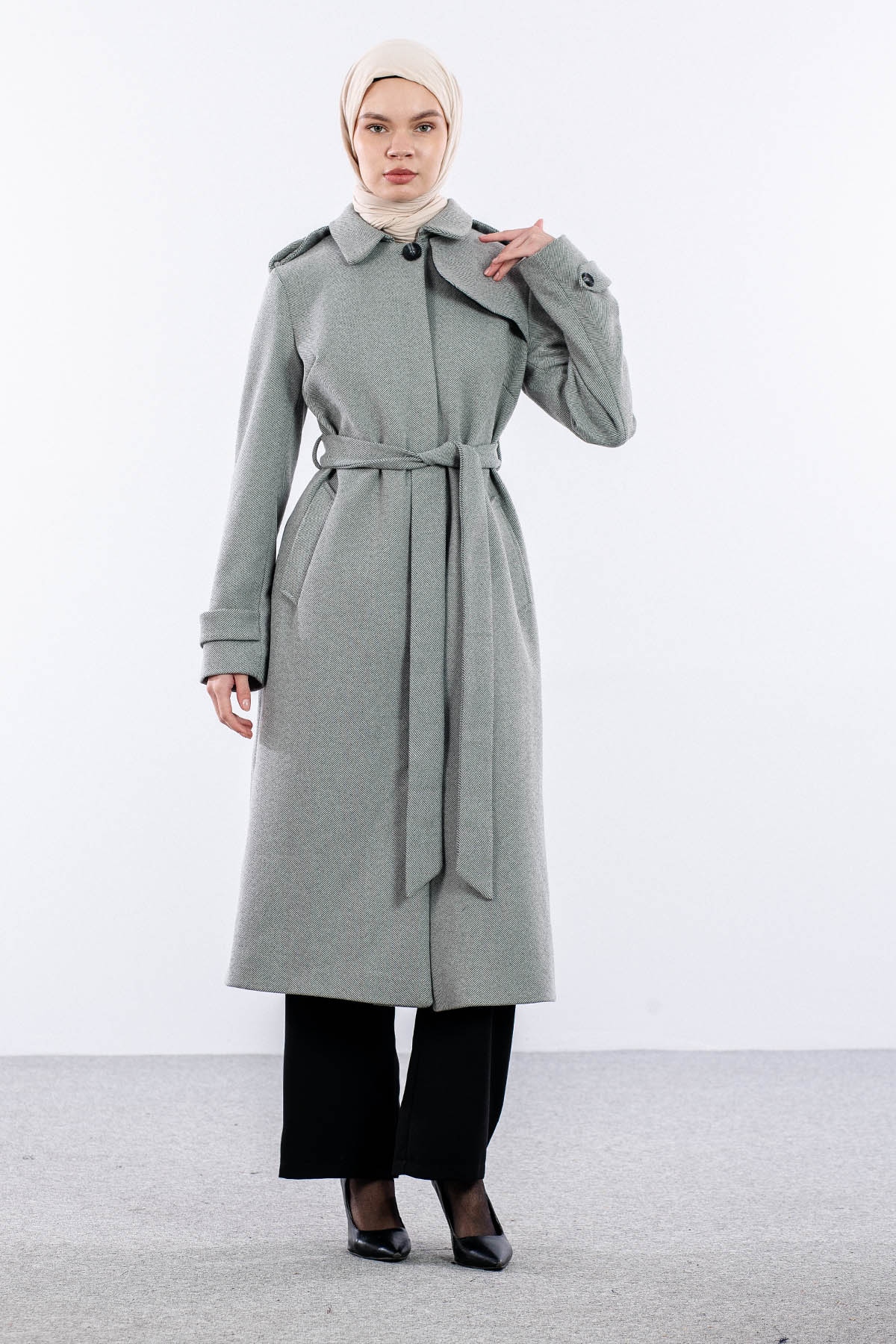 F-1586 Kaşe Kaban 38-48 Baliksirti Fermuarli - A_gri - 4