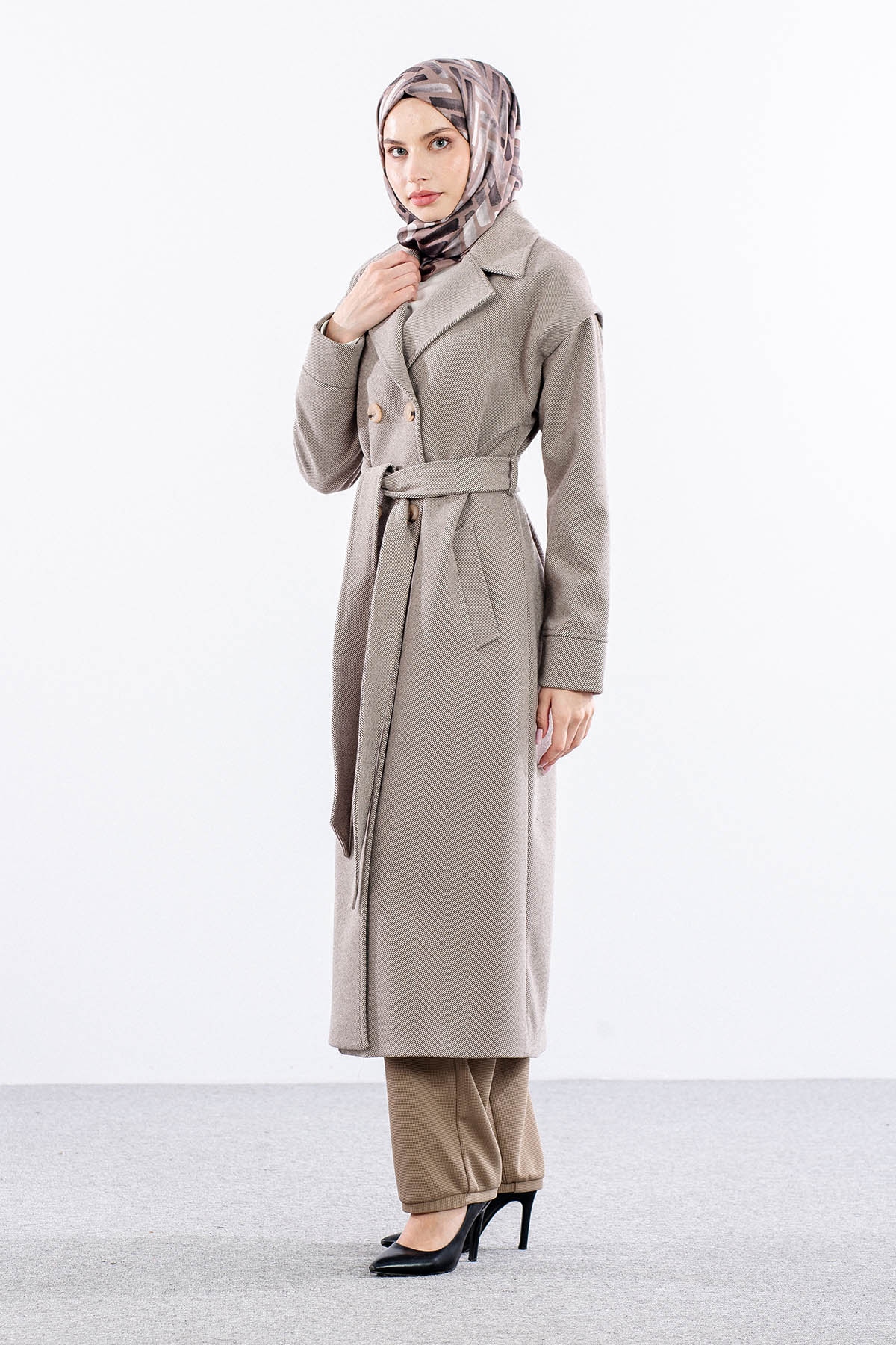 F-1595 Kaşe Kaban 38-48 Takma Kol Balıksırtı - K_kahve - 2