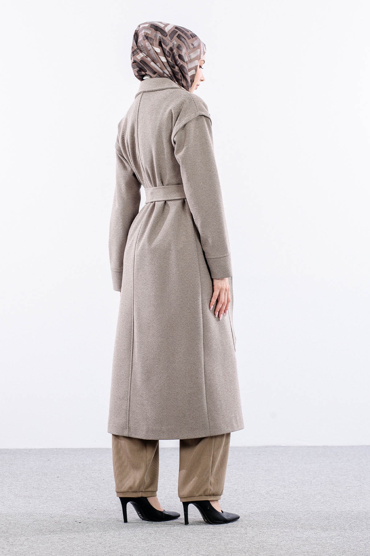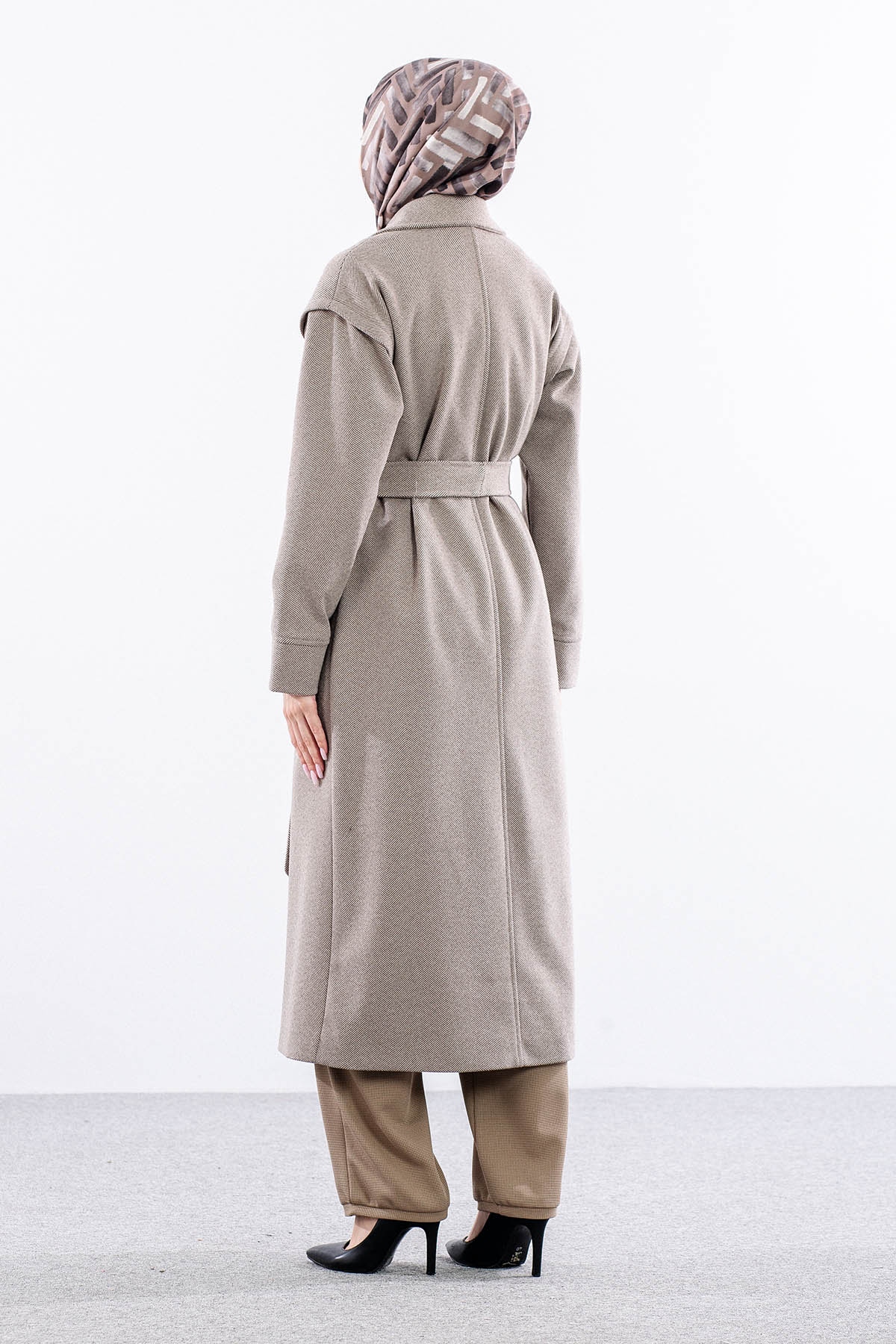 F-1595 Kaşe Kaban 38-48 Takma Kol Balıksırtı - K_kahve - 4