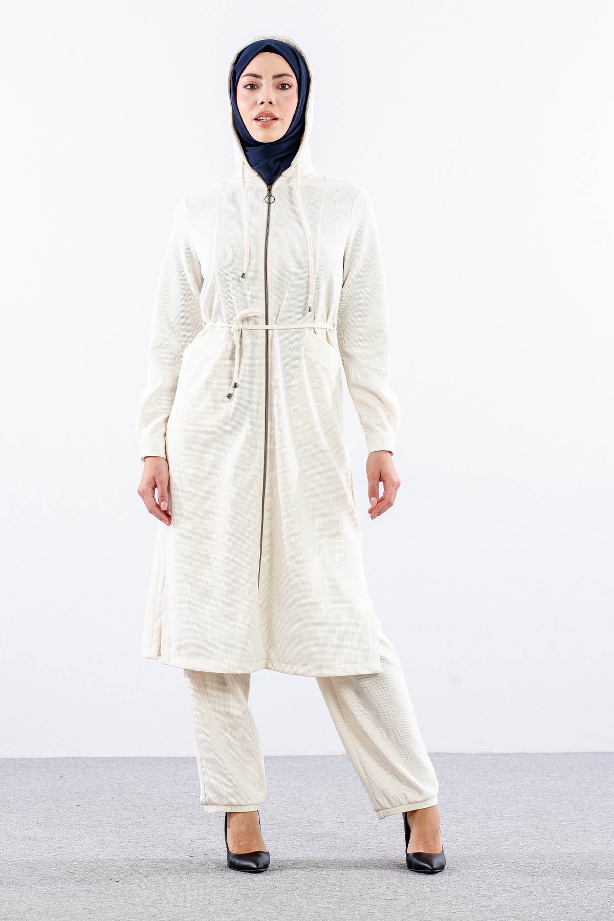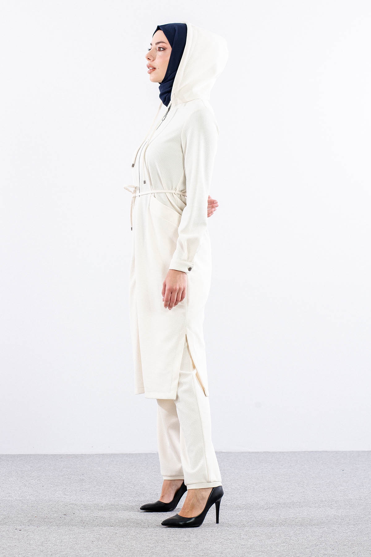 F-1598 Takim 38-48 Kapsonlu Fermuarli - Ekru - 1