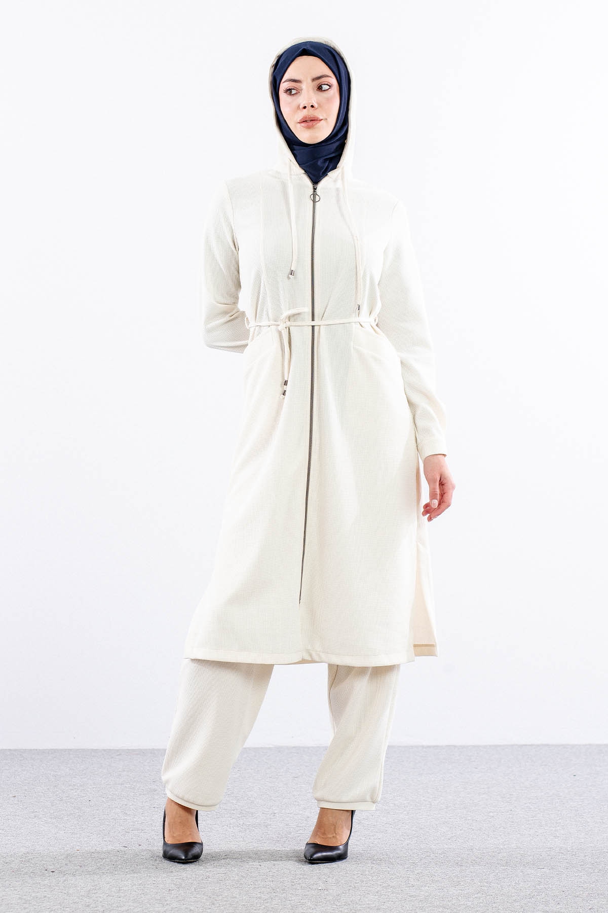 F-1598 Takim 38-48 Kapsonlu Fermuarli - Ekru