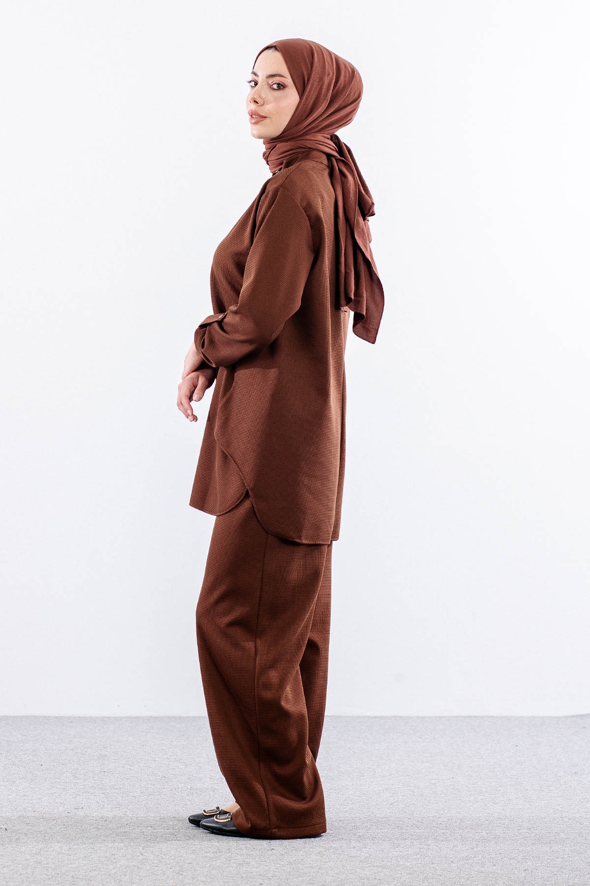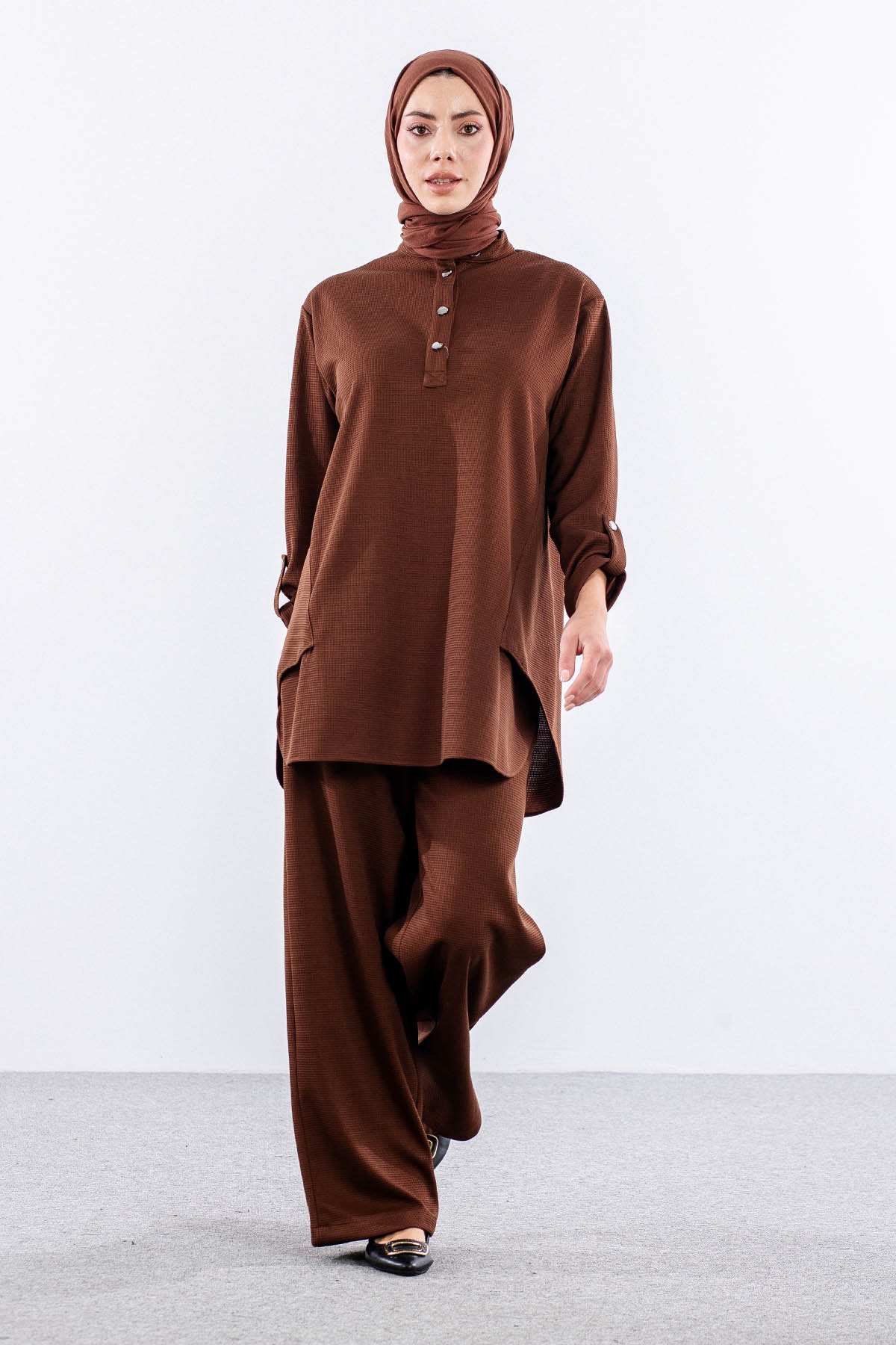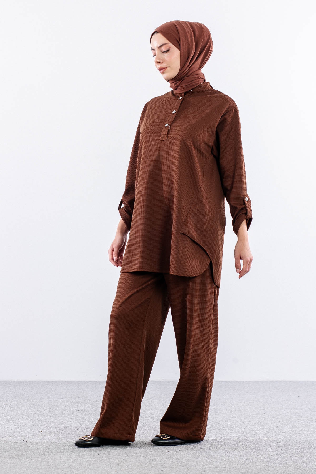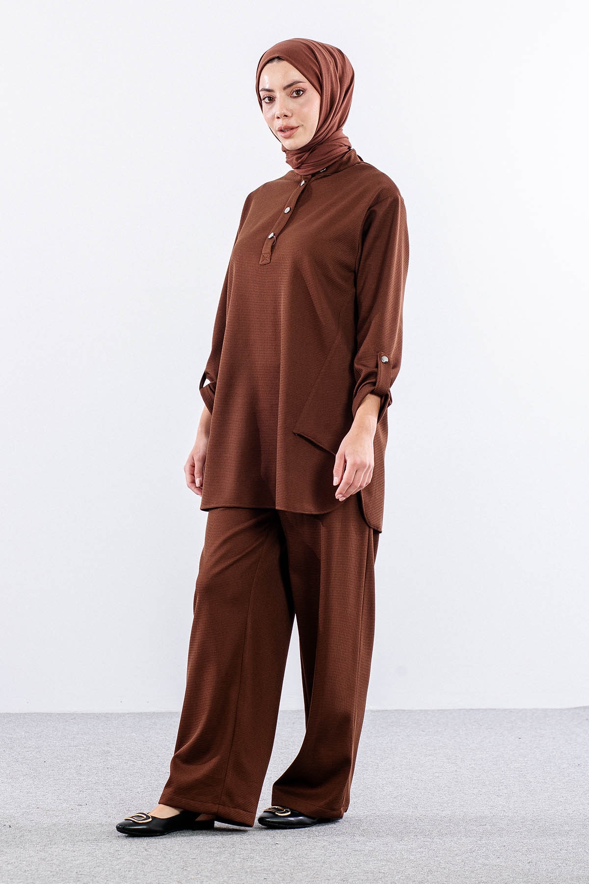 F-1605 Tunikli Takim 1-2-3 - Kahve - 5