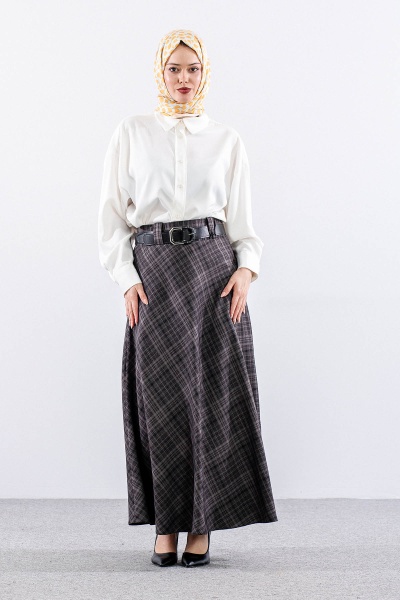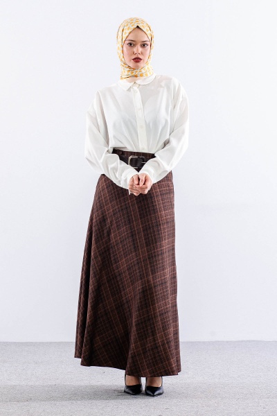Mevlana Etek 38-48 Ekose Gramaj - Bej - 1
