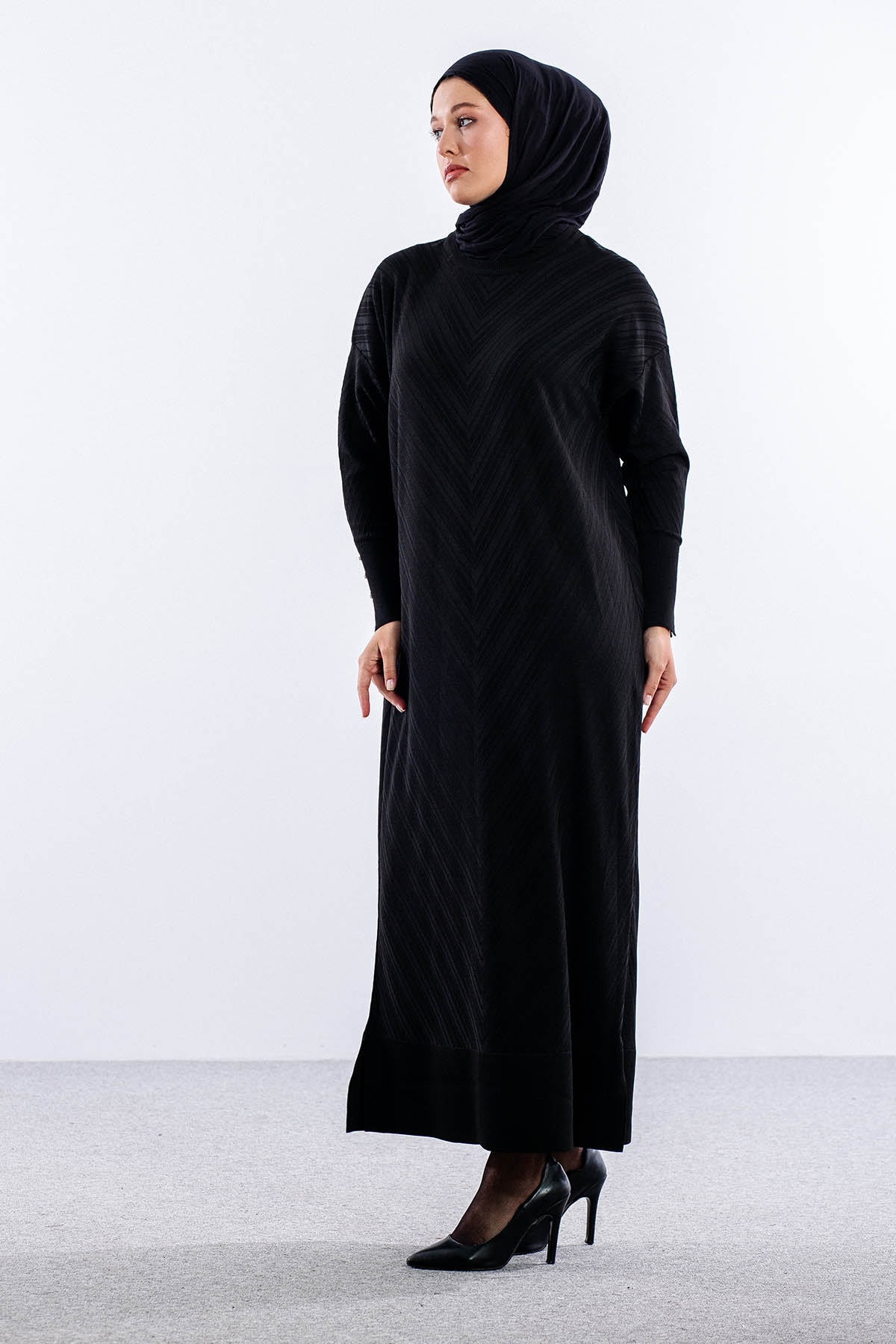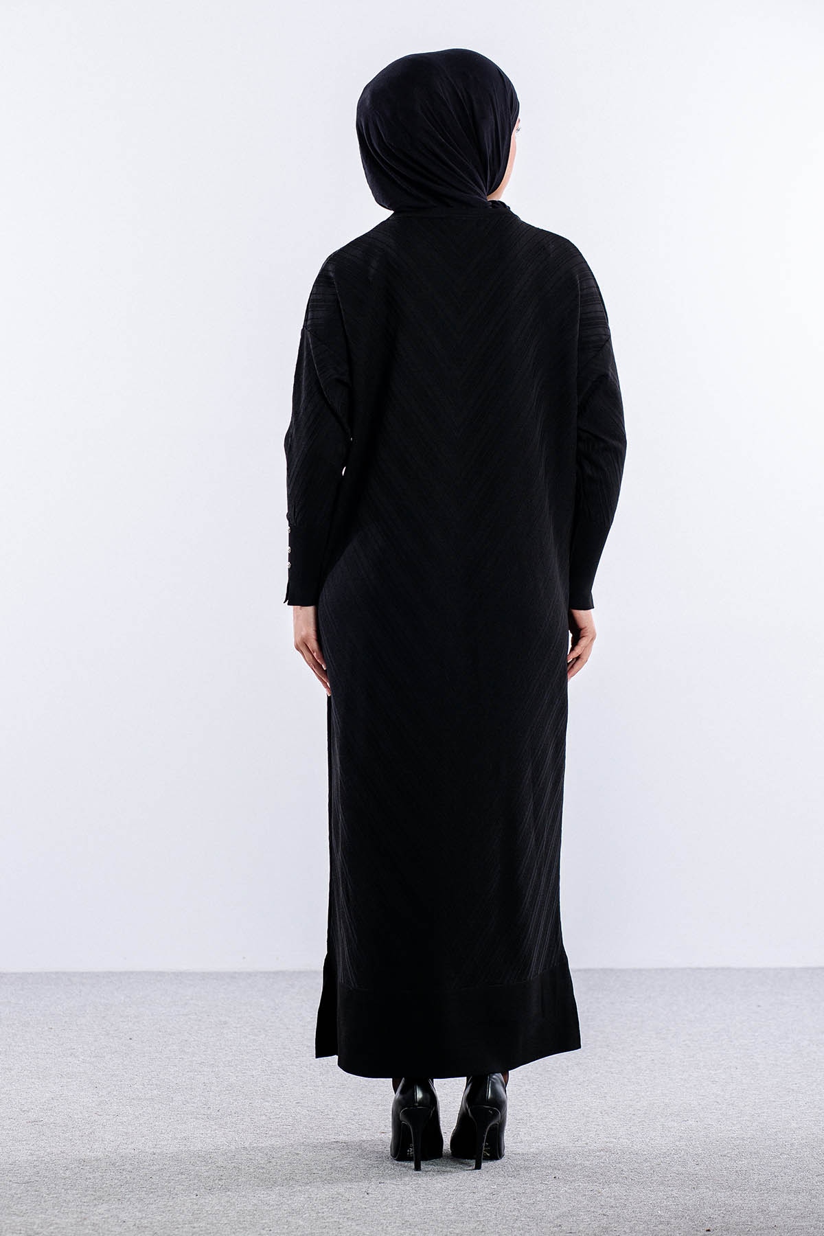 N337 Triko Elbise Tek - Siyah - 3